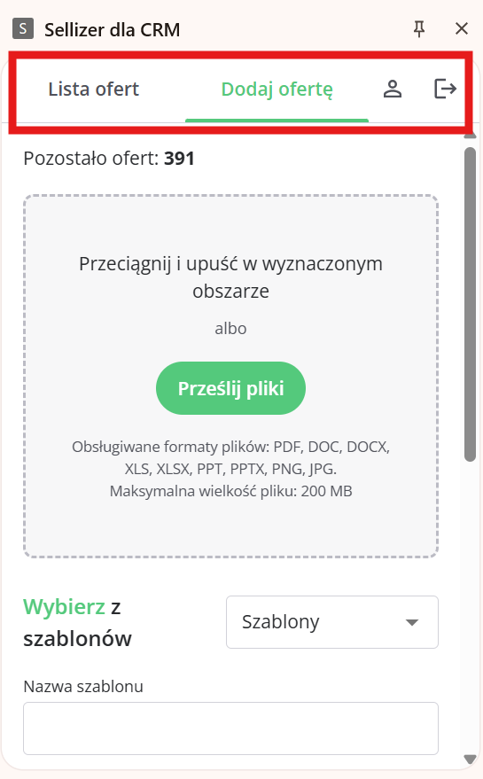 b) Chcesz wysłać nową ofertę? Przejdź do zakładki „Dodaj ofertę" i prześlij plik lub wybierz wcześniej przygotowany szablon albo dokument z Sellizera.
