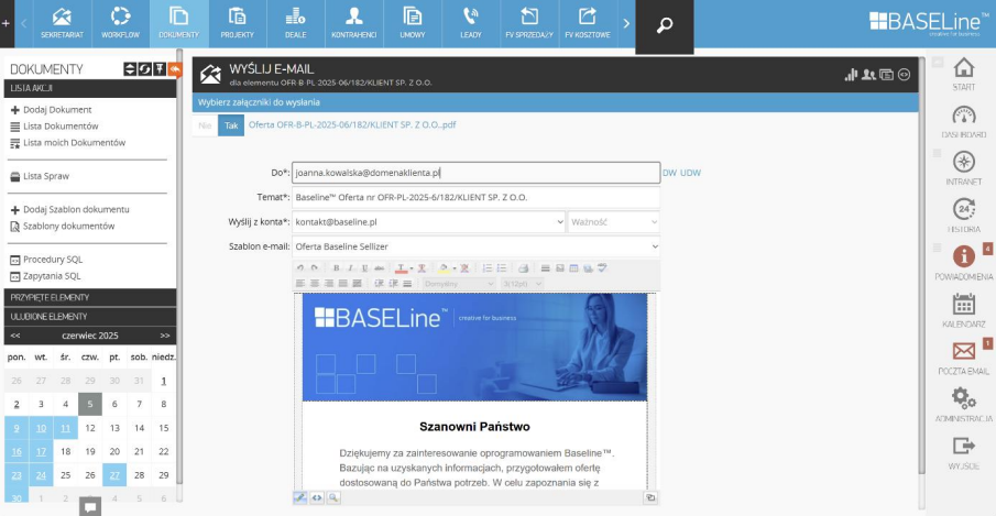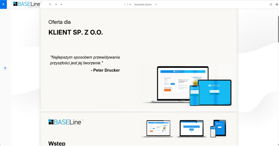 1. Handlowiec przygotowuje ofertę w CRM Baseline™ przy pomocy dedykowanego generatora dokumentów.