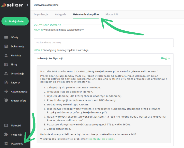 Własna subdomena w domenie Sellizer