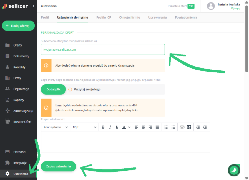 Po jej ustawieniu, link do Twojej oferty będzie mieć postać: twojanazwa.sellizer.com